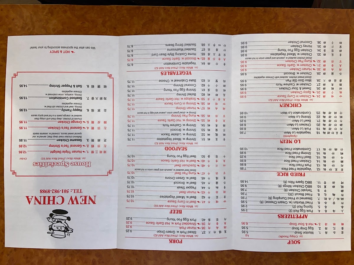New China Restaurant - Jacksonville Menu
